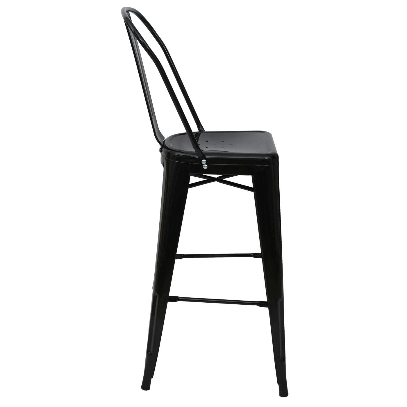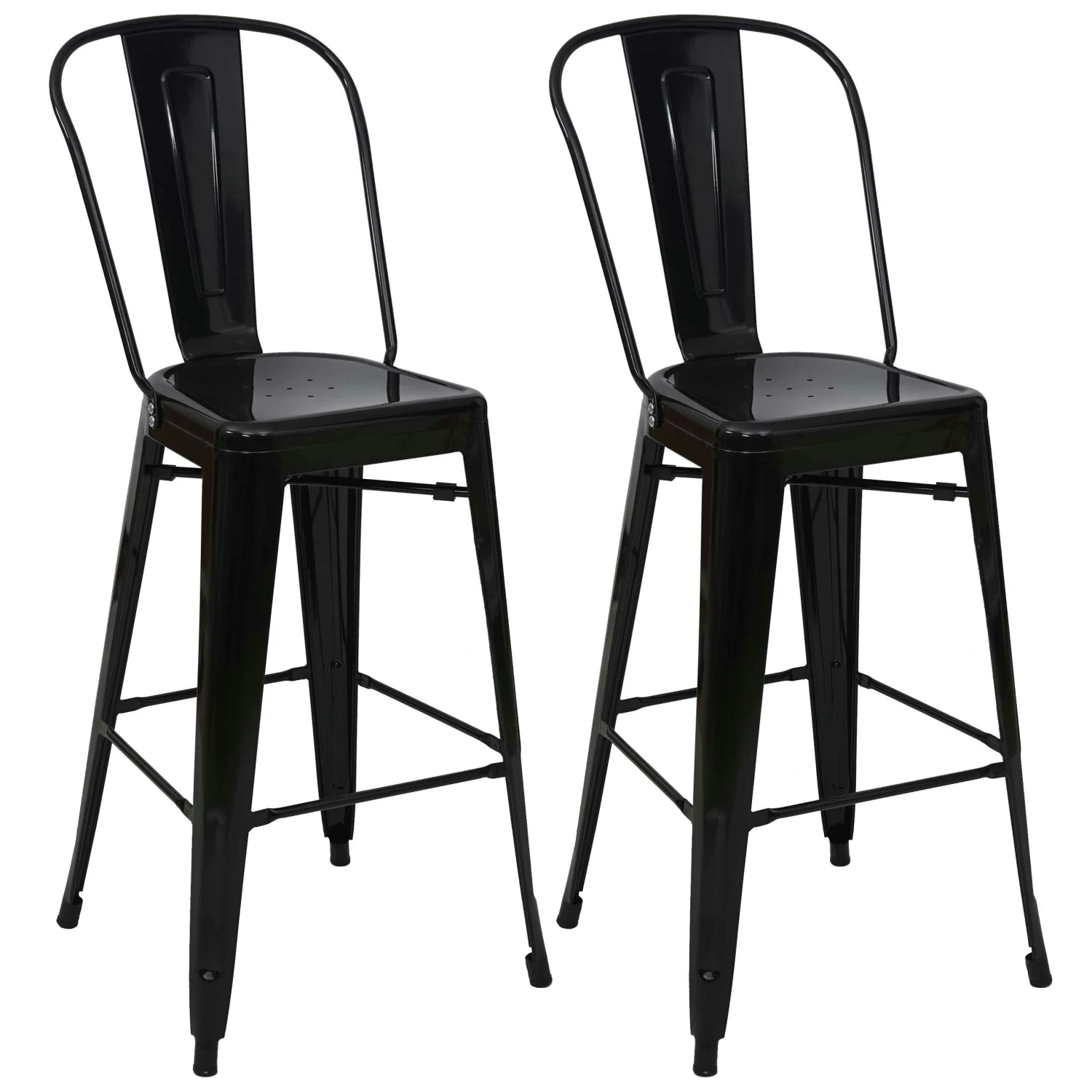 2er-Set Barhocker HWC-A73, Barstuhl Tresenhocker Mit Lehne, Metall Industriedesign ~ Schwarz