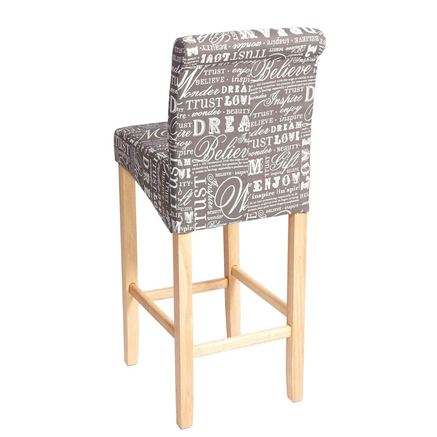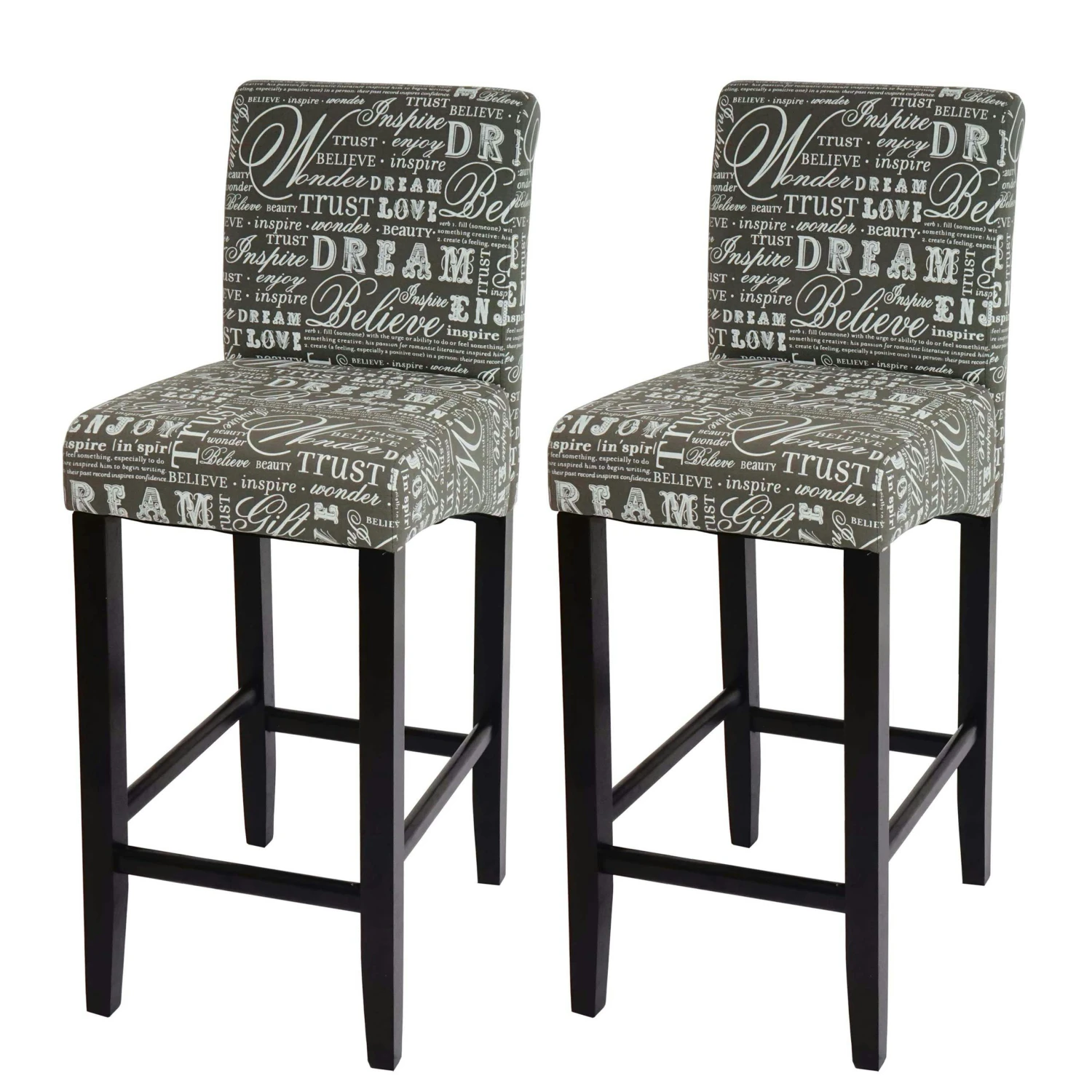 2er-Set Barhocker HWC-C33, Barstuhl Tresenhocker, Holz ~ Schriftzug, Grau, Helle Beine, Stoff/Textil