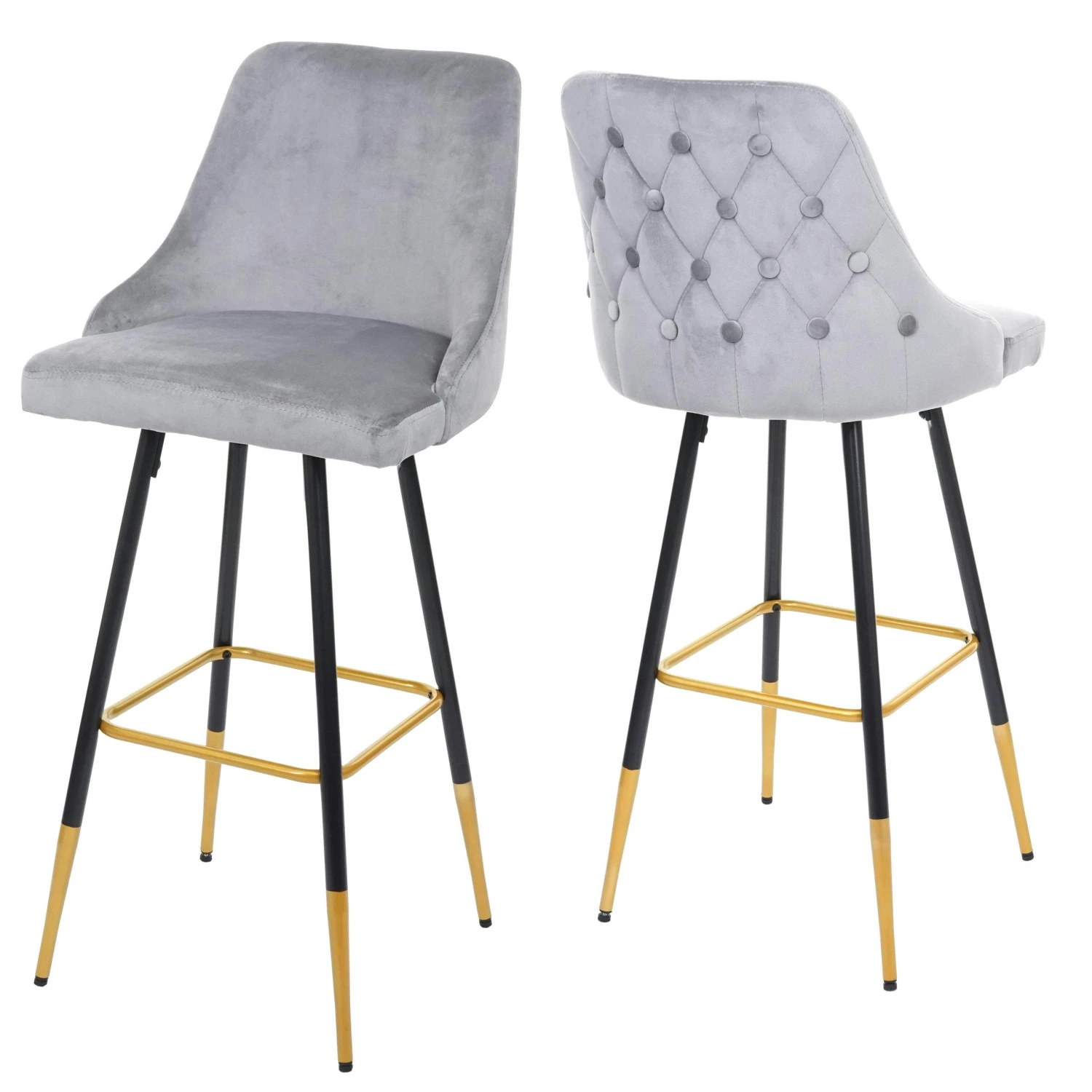 Noch heute bringen wir Samt in Verbindung mit königlichen Roben und Gewändern. Doch der weiche Stoff ist heute nicht mehr nur den Adligen und Reichen vorbehalten. Samt wird in den verschiedensten Bereichen verwendet und schafft ein ganz besonderes Ambiente. Dieser Barhocker fällt aber nicht nur durch seinen Samtbezug auf, sondern auch durch die edle Knopfsteppung auf der Rückseite. Die goldenen Fußenden und Streben der Fußablage machen den Barhocker zu einem extravaganten Blickfang.