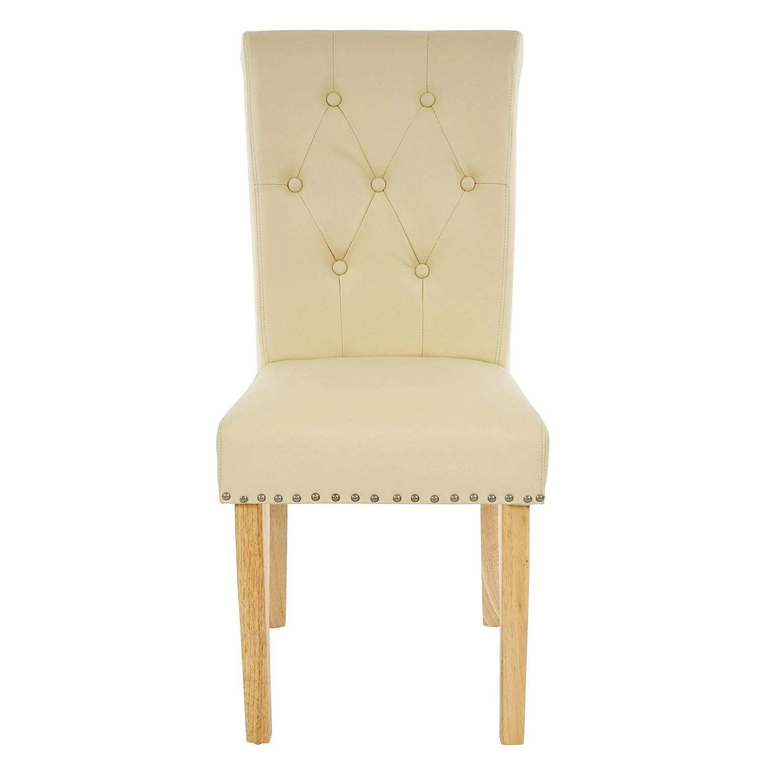 2er-Set Esszimmerstuhl Chesterfield II, Stuhl Küchenstuhl, Nieten ~ Kunstleder, Creme, Helle Beine