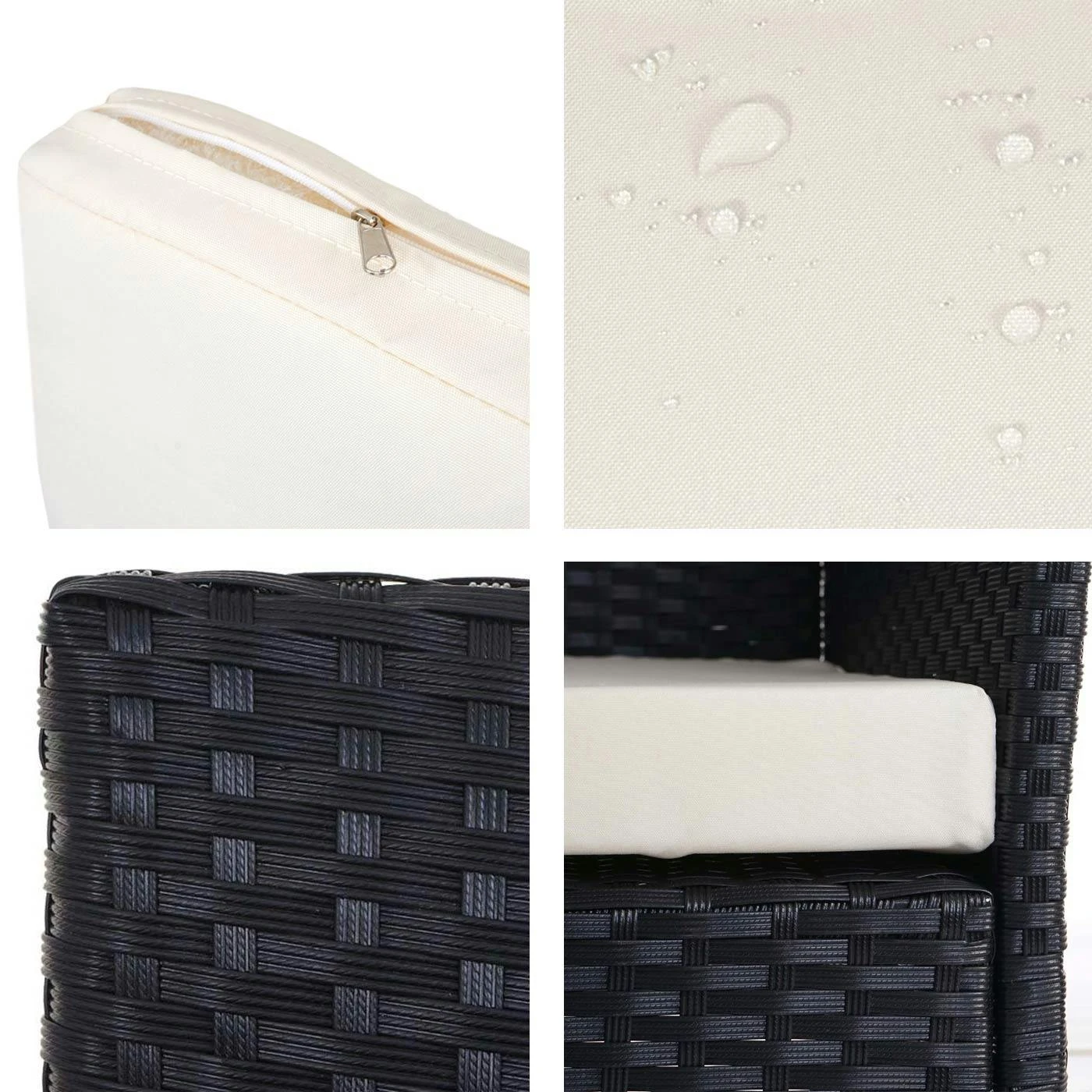 Maße (HxBxT) (ca.): Sessel: 83 x 59 x 60 cm 2-Sitzer Bank: 83 x 106 x 60 cm 3-Sitzer Bank: 82 x 154 x 60 cm Tisch: 38 x 79 x 48 cm Sitzkissen Höhe: 5 cm Sitzhöhe mit Kissen: 47 cm Höhe Rückenlehne (vom Sitz aus gemessen): 45 cm Höhe Armlehne (vom Sitz aus gemessen): 22 cm Höhe Armlehne (von Boden aus gemessen): 64 cm Stärke der Glasplatte: 0,5 cm Material: Geflecht: Poly-Rattan Gestell: Stahl Kissenbezug: 100% Polyester Tischplatte: Glas Diese schlichte Garnitur, in ihrem unaufdringlichen Design, fügt sich nahtlos in jede Umgebung ein und sieht immer aus, als würde sie genau dort hingehören. Gut verarbeitet, ist dieses Produkt der ideale Anlaufpunkt für alle, die ein Plätzchen mit dem gewissen Etwas suchen. Der sehr hochwertige Bezug rundet das geschmackvolle Gesamtbild dieser eleganten Sitzgelegenheiten ab und macht sie zu einem Must-have für alle, die gerne einmal entspannte Stunden verbringen oder sich das Warten verkürzen wollen. Poly-Rattan ist nicht irgendein x-beliebiges Material, sondern seit Jahren (beinahe alternativlos) DAS Material für (Garten-) Möbel der Spitzenklasse. Warum dem so ist? Schön, dass Sie fragen! Unser Poly-Rattan sieht zwar aus wie herkömmliches Rattan und verleiht Produkten somit eine unglaublich natürliche Optik, hat demgegenüber aber deutliche Vorteile. Es ist nicht nur wasserfest und extrem pflegeleicht, sondern auch äußerst widerstandsfähig und neigt nicht zum Fasern. Lieferumfang: 2x Sessel, 2x Bank, Sitzkissen, 1x Tisch mit Glasplatte (ohne Dekoration) Allgemeiner Montagehinweis: Achten Sie bitte darauf, dass Sie bei der Montage von Produkten Schrauben nicht sofort fest ziehen. Andernfalls können Sie die Gestelle verziehen und die Bohrlöcher passen nicht mehr zu den Schrauben. Sinnvoller ist daher zunächst nur so anzuziehen, dass die Schrauben greifen und nach der Fertigstellung festzuziehen.