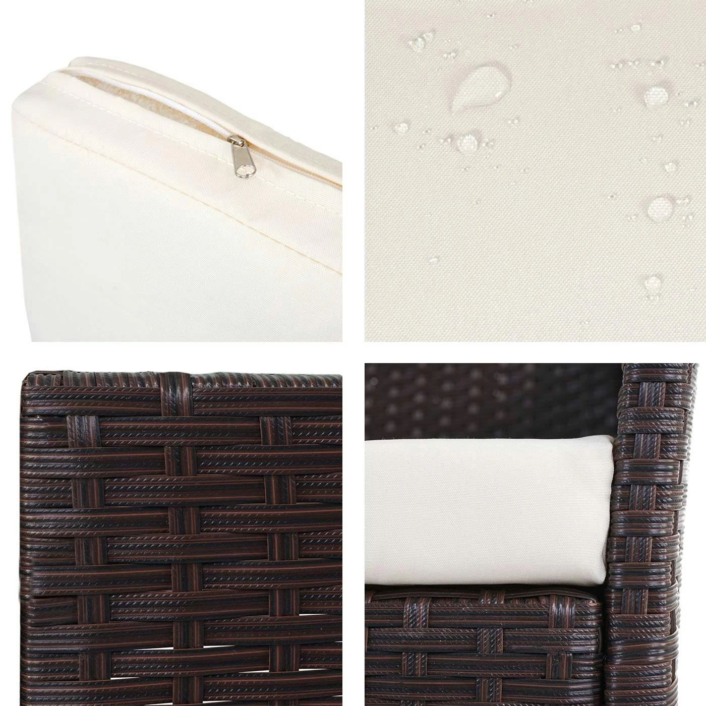 Maße (HxBxT) (ca.): Sessel: 83 x 59 x 60 cm 2-Sitzer Bank: 83 x 106 x 60 cm 3-Sitzer Bank: 82 x 154 x 60 cm Tisch: 38 x 79 x 48 cm Sitzkissen Höhe: 5 cm Sitzhöhe mit Kissen: 47 cm Höhe Rückenlehne (vom Sitz aus gemessen): 45 cm Höhe Armlehne (vom Sitz aus gemessen): 22 cm Höhe Armlehne (von Boden aus gemessen): 64 cm Stärke der Glasplatte: 0,5 cm Material: Geflecht: Poly-Rattan Gestell: Stahl Kissenbezug: 100% Polyester Tischplatte: Glas Diese schlichte Garnitur, in ihrem unaufdringlichen Design, fügt sich nahtlos in jede Umgebung ein und sieht immer aus, als würde sie genau dort hingehören. Gut verarbeitet, ist dieses Produkt der ideale Anlaufpunkt für alle, die ein Plätzchen mit dem gewissen Etwas suchen. Der sehr hochwertige Bezug rundet das geschmackvolle Gesamtbild dieser eleganten Sitzgelegenheiten ab und macht sie zu einem Must-have für alle, die gerne einmal entspannte Stunden verbringen oder sich das Warten verkürzen wollen. Poly-Rattan ist nicht irgendein x-beliebiges Material, sondern seit Jahren (beinahe alternativlos) DAS Material für (Garten-) Möbel der Spitzenklasse. Warum dem so ist? Schön, dass Sie fragen! Unser Poly-Rattan sieht zwar aus wie herkömmliches Rattan und verleiht Produkten somit eine unglaublich natürliche Optik, hat demgegenüber aber deutliche Vorteile. Es ist nicht nur wasserfest und extrem pflegeleicht, sondern auch äußerst widerstandsfähig und neigt nicht zum Fasern. Lieferumfang: 2x Sessel, 2x Bank, Sitzkissen, 1x Tisch mit Glasplatte (ohne Dekoration) Allgemeiner Montagehinweis: Achten Sie bitte darauf, dass Sie bei der Montage von Produkten Schrauben nicht sofort fest ziehen. Andernfalls können Sie die Gestelle verziehen und die Bohrlöcher passen nicht mehr zu den Schrauben. Sinnvoller ist daher zunächst nur so anzuziehen, dass die Schrauben greifen und nach der Fertigstellung festzuziehen.