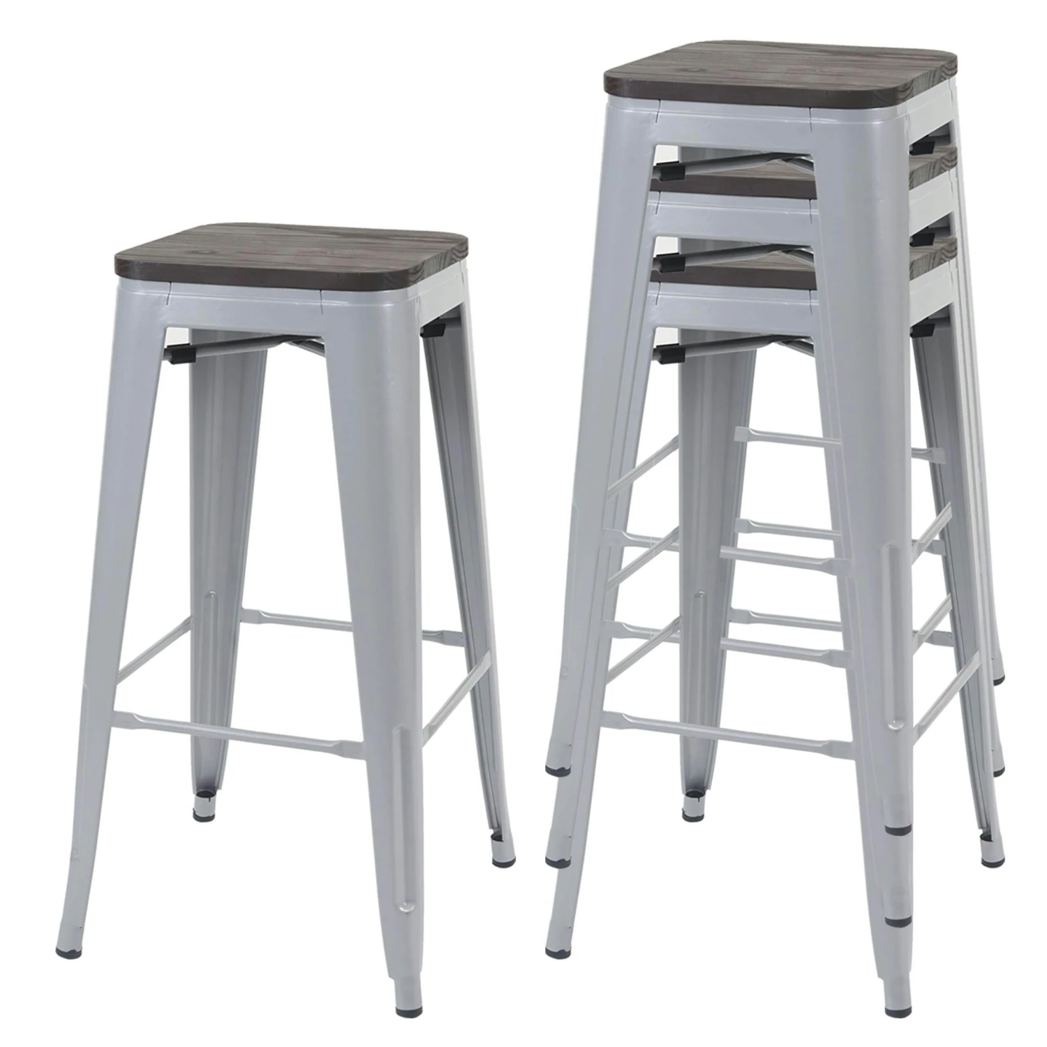 4er-Set Barhocker HWC-A73 Inkl. Holz-Sitzfläche, Barstuhl Tresenhocker, Metall Industriedesign Stapelbar ~ Grau