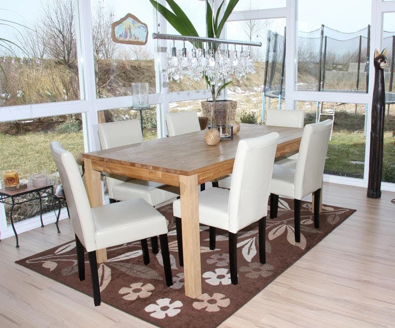 4er-Set Esszimmerstuhl Stuhl Küchenstuhl Littau ~ Kunstleder, Creme Dunkle Beine