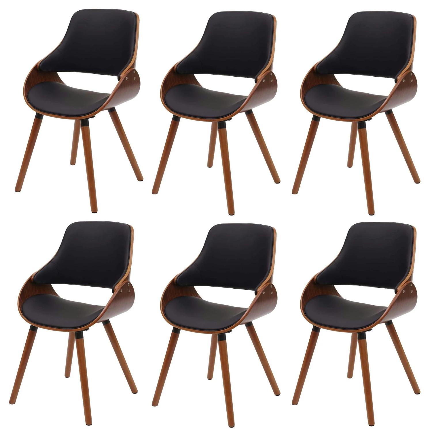 6er-Set Esszimmerstuhl HWC-D23, Küchenstuhl Stuhl, Retro-Design ~ Kunstleder Schwarz