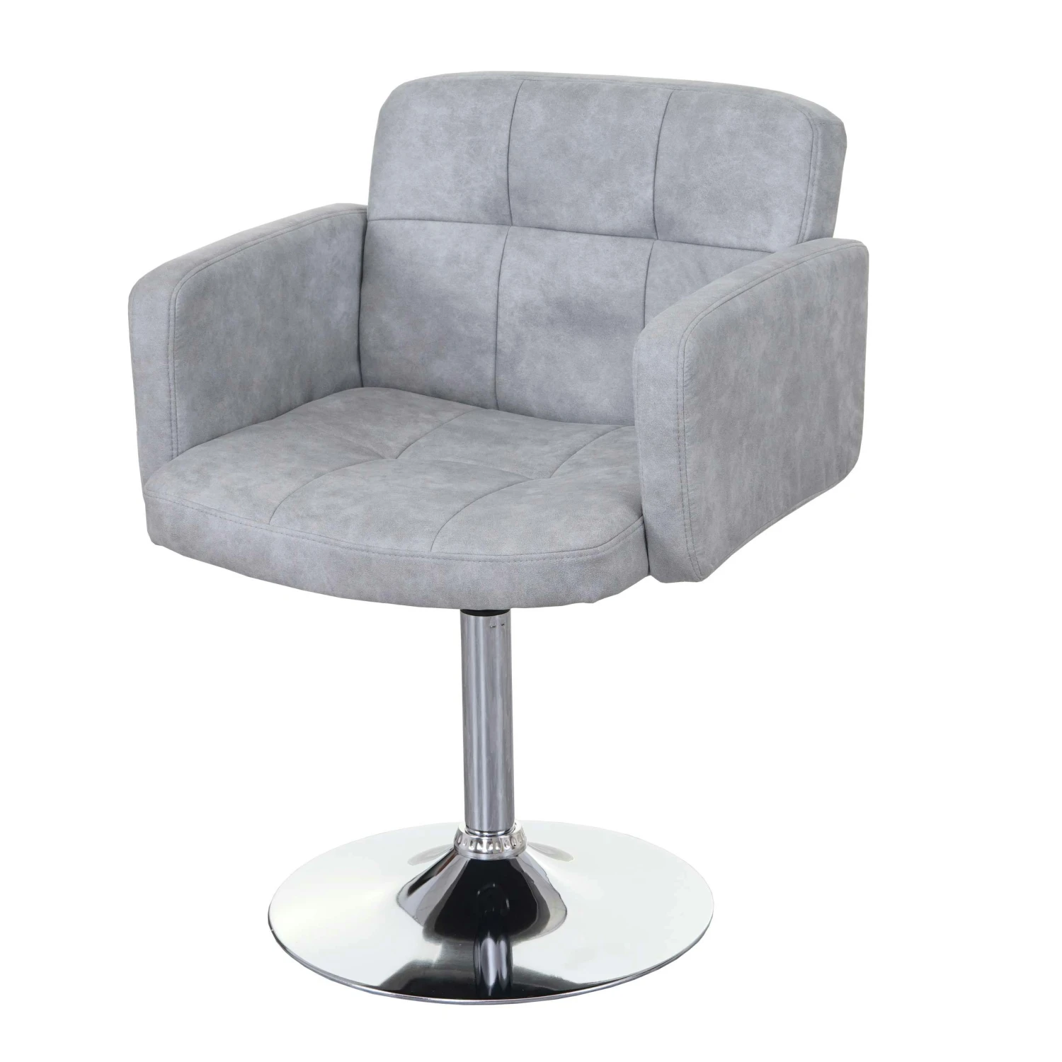 Maße (ca.): Gesamthöhe: 80 cm Gesamtbreite: 60 cm Gesamttiefe: 55 cm Sitzhöhe: 50 cm Sitztiefe: 41 cm Sitzbreite: 47 cm Höhe Rückenlehne (vom Sitz aus gemessen): 35 cm Höhe Armlehne (vom Sitz aus gemessen): 18 cm Fußplatte = Ø 45 cm Nicht nur das formschöne und schlichte Design weiß bei diesem Esszimmerstuhl zu überzeugen, sondern auch der überraschend hohe Sitzkomfort mit einer Polsterstärke von 6 cm lässt ein längeres Verweilen zu, was man von einem bequemen Esszimmerstuhl erwarten darf. Zudem besitzt der Stuhl Armlehnen und wird nach dem Essen zum Lounger. Der verchromte zylinderförmige Fuß bietet einen sicheren Stand und runden das hochwertige Design perfekt ab. Um 360° drehbar, erfüllt dieser Esszimmerstuhl sämtliche Anforderungen und wird Ihnen lange Freude bereiten.