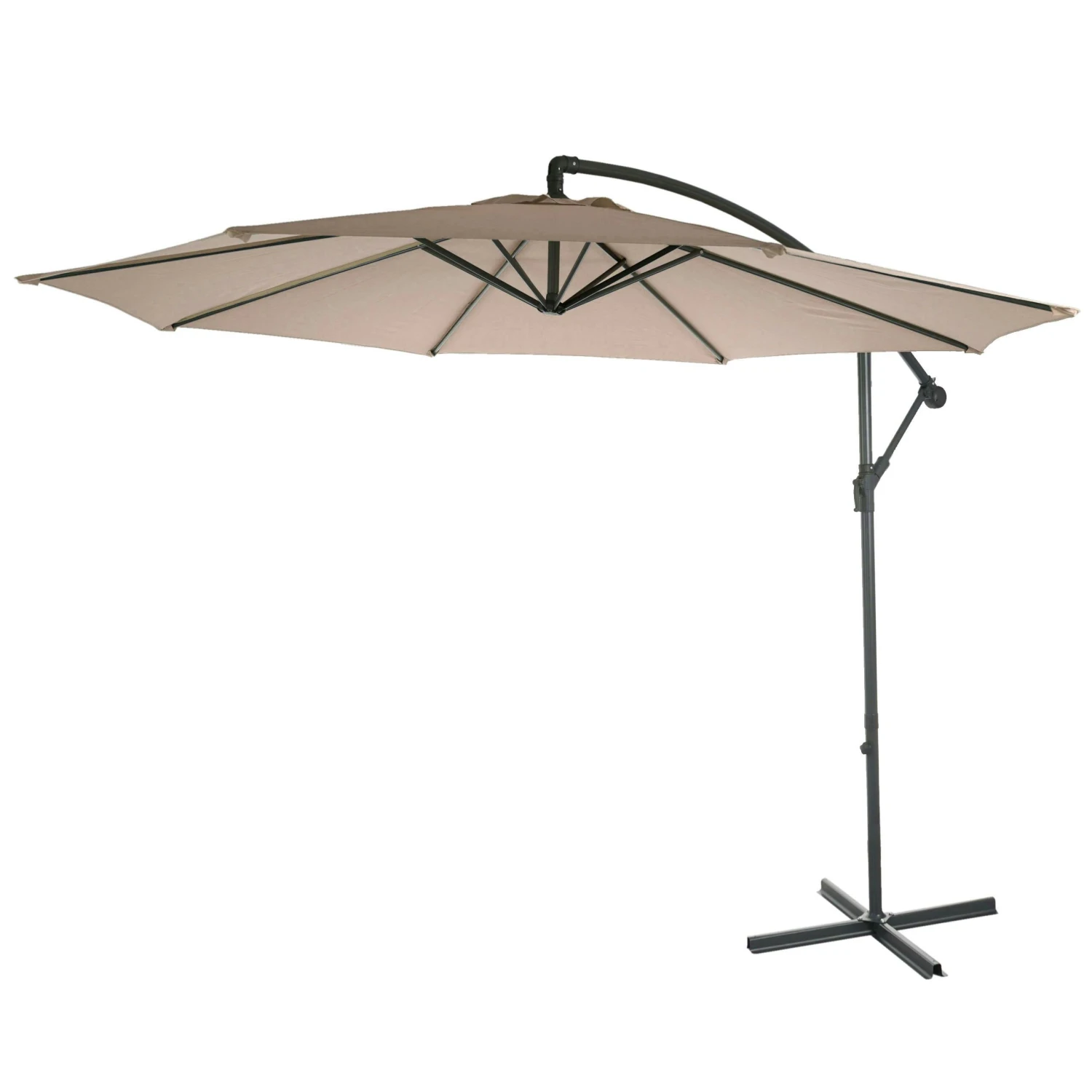 – Mit den ersten wärmenden Sonnenstrahlen zieht es uns nach draußen. Egal ob auf der Terrasse oder im Garten – dieser Sonnenschirm wird garantiert zum Blickfang. Hier vereinen sich Design und Sonnenschutz in perfekter Kombination. – Genießen Sie an heißen Tagen einen schattigen Platz für angenehme Mittagsstunden im Grünen. Mit einem Sonnenschirm in Ihrer Lieblingsfarbe steht einem entspannten Sommertag in Ihrem Garten nichts mehr im Weg. Dieser Schirm macht den Sommer angenehmer! Maße (ca.): Gesamthöhe voll aufgeklappt: 255 cm Gesamthöhe zusammengeklappt: 235 cm Gesamtbreite: 360 cm Gesamttiefe: 295 cm Max. Spannweite: 300 cm Durchmesser: 295 cm Durchgangshöhe voll aufgeklappt: 210 cm Stärke Streben: 1,7×1 cm Stärke Mast: 4,5 cm Ø Bodenkreuz: 98 cm Befestigungsmöglichkeiten des Bodenkreuzes: – einbetonieren in den Boden – Betonplatten Sonne, Sun, Sol, Helios – so vielfältig die Bezeichnungen, so vielfältig die Gefahren, die von unser aller Lieblingsstern ausgehen. Schützen Sie sich vor zu viel direkter Sonneneinstrahlung, mit einem erstklassigen UV-Protektionsschild – umgangssprachlich auch banal als Sonnenschirm bezeichnet. Der Bezug aus hochwertigem Polyester schützt Sie nicht nur zuverlässig vor UV-Strahlung, sondern ist außerdem regenbeständig (aber nicht auf Dauer wasserdicht), so dass auch ein kurzer Schauer nicht zum Problem wird. Verstärkte Metallstreben sorgen für windstabilen Stand und zusätzliche Stabilität, während Sie, dank der integrierten Luftzirkulationshaube, immer einen kühlen Kopf bewahren. Die integrierte stufenlose Höhen-/ Neigungswinkelverstellung bietet Ihnen, Rundum-Schutz vom Feinsten, während die mitgelieferte Kurbel Sie den Schirm problemlos öffnen und schließen lässt. Der Ständer hält auch kleine Windstöße ohne zusätzliche Beschwerung aus. Wir empfehlen Ihnen aber den Ständer für eine höhere Sicherheit zu beschweren. Wir verwenden dickere Streben, die zwar doppelt so teuer sind, dafür jedoch die Haltbarkeit Ihres Schirms quadrieren (G x 2 < T², für alle Mathematiker unter Ihnen). Glauben Sie uns, das ist es wert! Oder wollen Sie das die Streben nach ein paar Mal öffnen schon brechen, wie es bei dünneren Streben oft der Fall ist?
