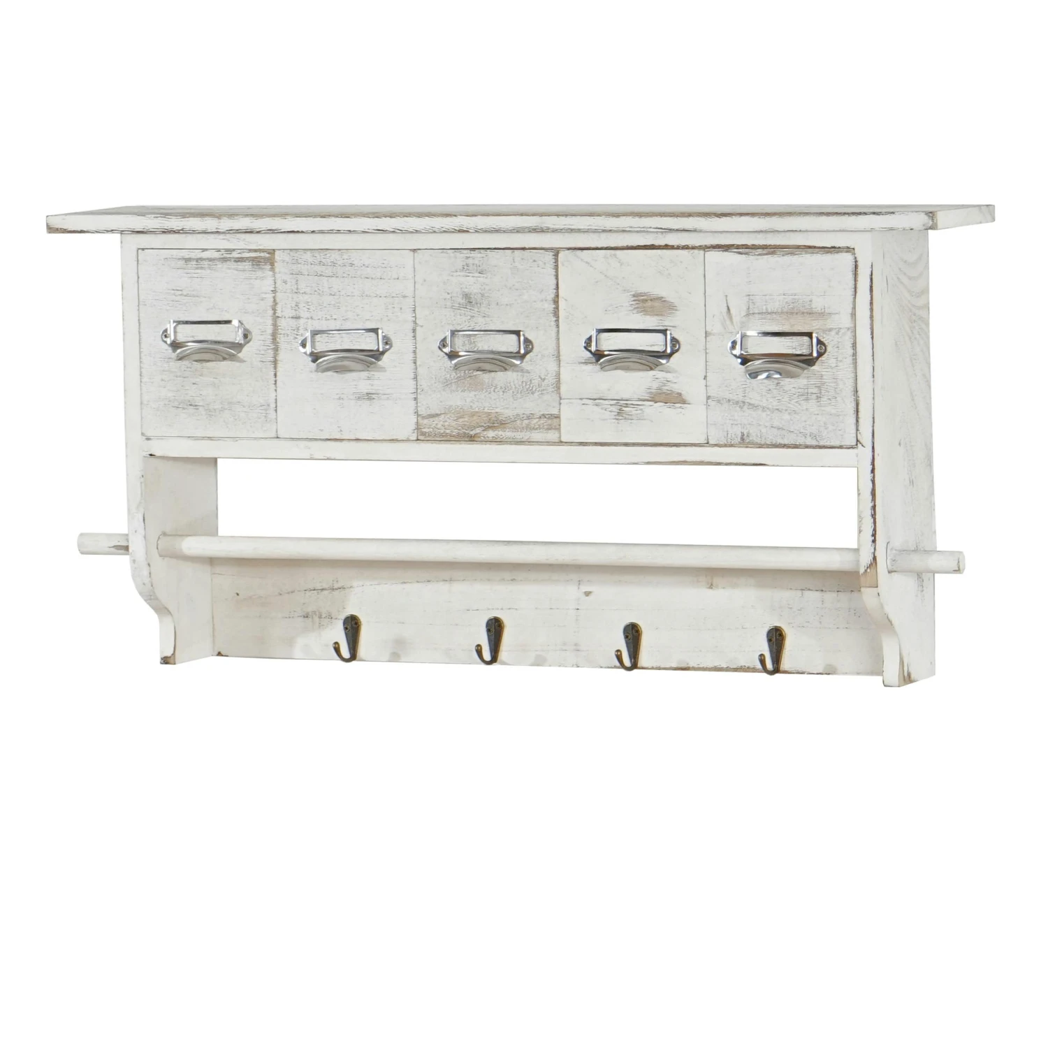 Garderobe HWC-C49, Wandgarderobe Wandregal, Vintage Mit 5 Schubladen 32x65x13cm ~ Braun