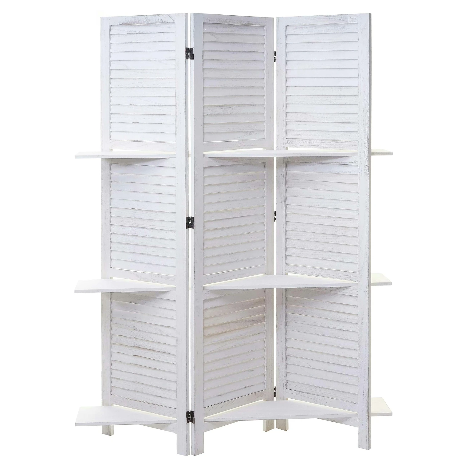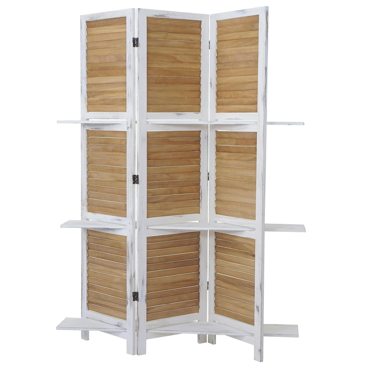Paravent Yvelines, Trennwand Raumteiler Mit Regalböden 170x125cm, Shabby Look ~ Weiß/braun