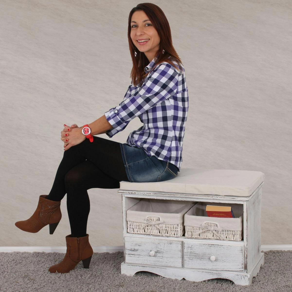 Eine Sitzbank, welche auch als Kommode absolut durchgeht, die sich sehen lassen kann und in denen Ihre Dinge alle ihren eigenen Platz finden!