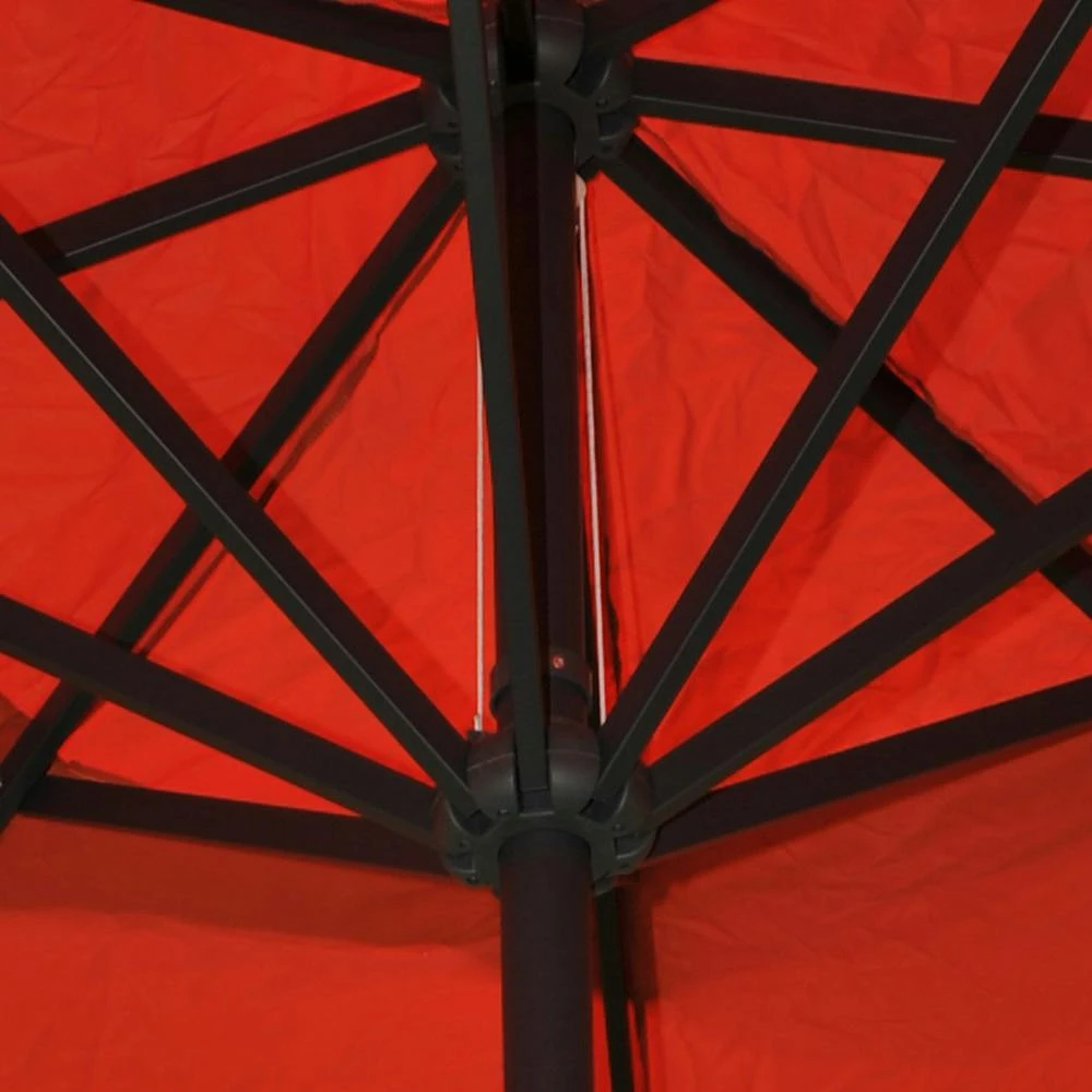 Gefertigt aus pulverbeschichtetem, rostfreien Aluminium unterstreicht das Gestänge die Hochwertigkeit der verwendeten Materialien noch einmal und bietet Rundum-Schutz vom Feinsten. Seine Teleskopstreben machen diesen Marktschirm außerdem zu einem echten Raumwunder, das perfekt mit unseren, separat oder im Set erhältlichen, zerlegbaren Profi-Schirmständern harmoniert. Sicherer Stand und ein integrierter Tragegriff – nicht nur für gewerbliche Nutzer die Ideallösung.