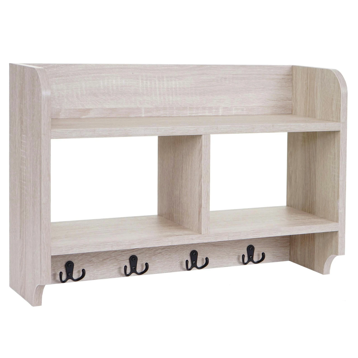 In jede Diele gehört eine Garderobe, doch es muss nicht immer der klassische Garderobenständer sein. Diese schlichte Wandgarderobe mit vier Haken, zwei Regalfächern und einer Ablagefläche fügt sich in jeden Einrichtungsstil ein und bietet gleichzeitig genügend Möglichkeiten, Ihre Kleidung ordentlich und optisch ansprechend aufzubewahren. Die aufwendige 3D-Oberflächenstruktur ist nicht nur zu sehen, sondern auch deutlich spürbar. In dieser Wandgarderobe haben Sie einen nützlichen wie dekorativen Haushaltshelfer, auf den Sie sicher schon bald nicht mehr verzichten wollen.