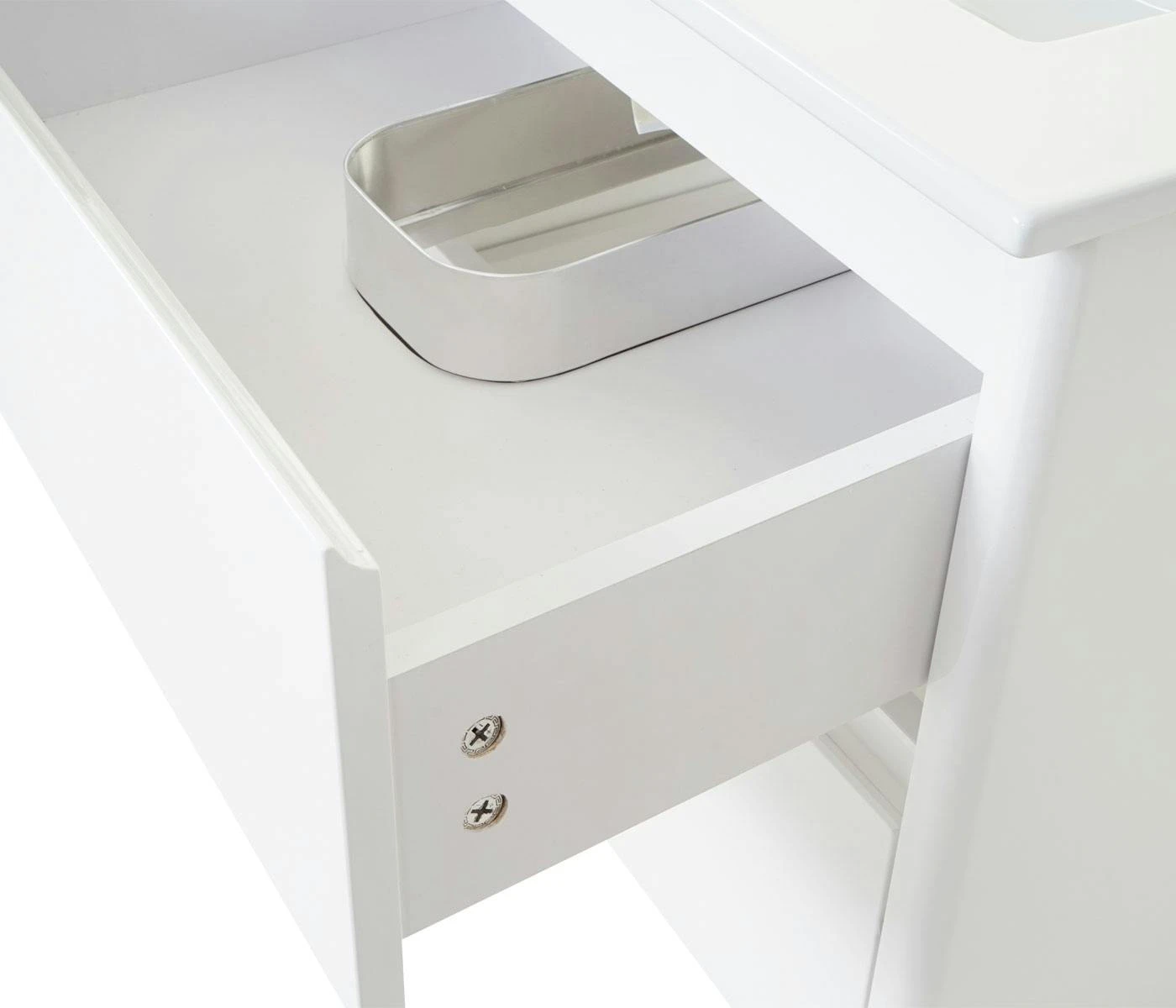 Maße (HxBxT) (ca.): Gesamtmaße: 50 x 61 x 47 cm Innenmaße Schublade: 5 x 49,5 x 33 cm Aussparung in der oberen Schublade: 13,5 x 22 cm Abflussöffnung: Ø 4,5 cm Material: Waschbecken: Keramik Waschbeckenunterschrank: 16mm Sperrholz, hochglanz weiß, schwarz oder grau lackiert Fällt es auch Ihnen schwer, sich morgens aufzuraffen und motiviert in den Tag zu starten? Wie wäre es dann mit einer frischen Veränderung in Ihrem Badezimmer? Dank unserer neuen Serie können Sie es morgens bald nicht mehr abwarten endlich ins Badezimmer zu kommen und sich frisch zu machen. Ob Föhn, Zahnbürste, Handtuch, Shampoo oder Seife: Der Waschbeckenunterschrank bietet viel Stauraum für die Dinge, die morgens schnell auffindbar sein müssen. Das frische, moderne Design dieses Möbelstückes hat eine positive Aura und ist daher ideal für das Raumklima Ihres Badezimmers. Und das allerbeste: Das Waschbecken ist auch mit dabei. Wir empfehlen das Waschbecken mit einem geeigneten Sanitärsilikon auf den Waschbeckenunterschrank und an der Wand zu befestigen. Bei dieser Serie wurde Sperrholz verwendet, da es stabiler und wasserresistenter als vergleichbare Materialien wie zum Beispiel MDF ist.