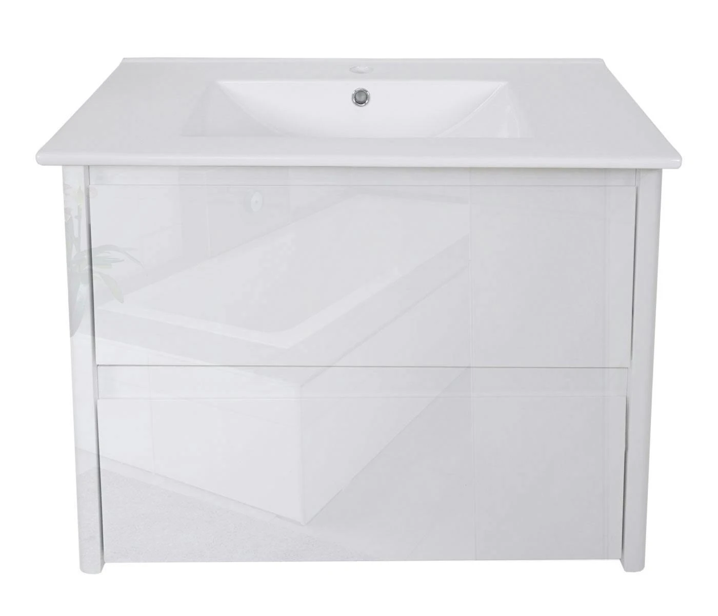 Maße (HxBxT) (ca.): Gesamtmaße: 50 x 81 x 47 cm Innenmaße Schublade: 5 x 69,5 x 33 cm Aussparung in der oberen Schublade: 13,5 x 22 cm Abflussöffnung: Ø 4,5 cm Material: Waschbecken: Keramik Waschbeckenunterschrank: 16mm Sperrholz, hochglanz lackiert Fällt es auch Ihnen schwer, sich morgens aufzuraffen und motiviert in den Tag zu starten? Wie wäre es dann mit einer frischen Veränderung in Ihrem Badezimmer? Dank unserer neuen Serie können Sie es morgens bald nicht mehr abwarten endlich ins Badezimmer zu kommen und sich frisch zu machen. Ob Föhn, Zahnbürste, Handtuch, Shampoo oder Seife: Der Waschbeckenunterschrank bietet viel Stauraum für die Dinge, die morgens schnell auffindbar sein müssen. Das frische, moderne Design dieses Möbelstückes hat eine positive Aura und ist daher ideal für das Raumklima Ihres Badezimmers. Und das allerbeste: Das Waschbecken ist auch mit dabei. Wir empfehlen das Waschbecken mit einem geeigneten Sanitärsilikon auf den Waschbeckenunterschrank und an der Wand zu befestigen. Bei dieser Serie wurde Sperrholz verwendet, da es stabiler und wasserresistenter als vergleichbare Materialien wie zum Beispiel MDF ist.